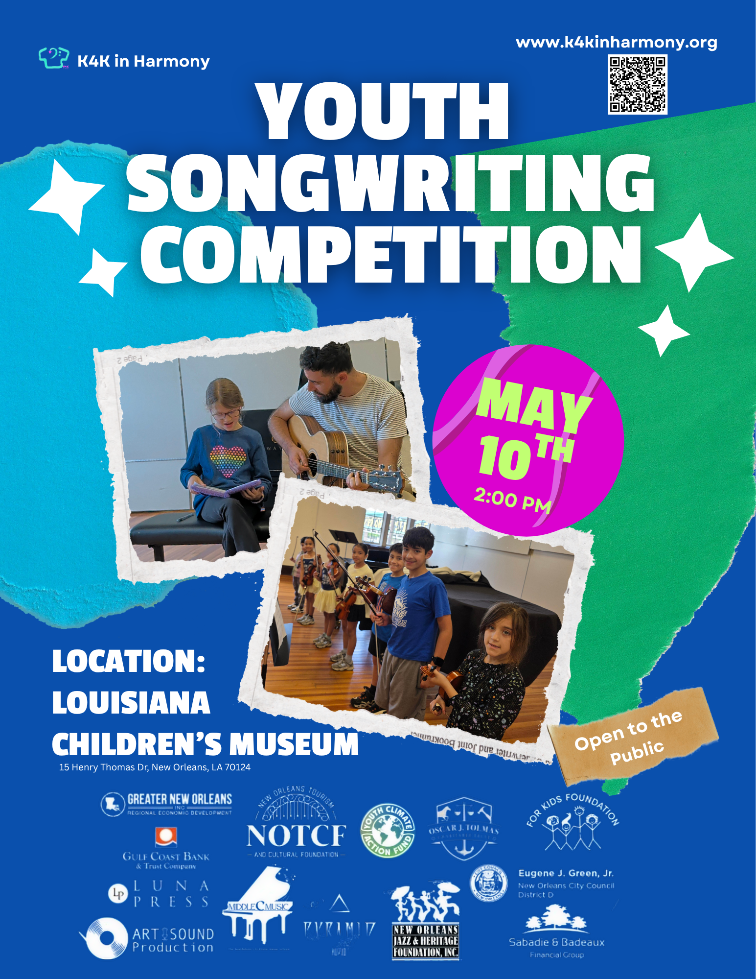 We’re excited to invite you to K4K inHarmony’s Songwriting Competition—an inspiring afternoon of original music, powerful storytelling, and young voices taking the stage.